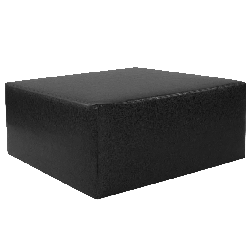 Pouf quadrato con rivestimento in ecopelle di colore nero. Presenta un design minimalista e versatile, adattabile a diversi contesti e stili di eventi, sia formali che informali. Le dimensioni sono contenute per integrarsi senza problemi in spazi diversi, assicurando comodità e un aspetto ordinato.