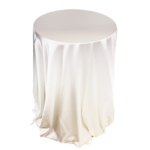 Tavolino alto bistrò, dal design semplice ed elegante, perfetto per eventi e spazi compatti. In questa configurazione è dotato di tovaglia bianca di cotone finissimo di alta qualità