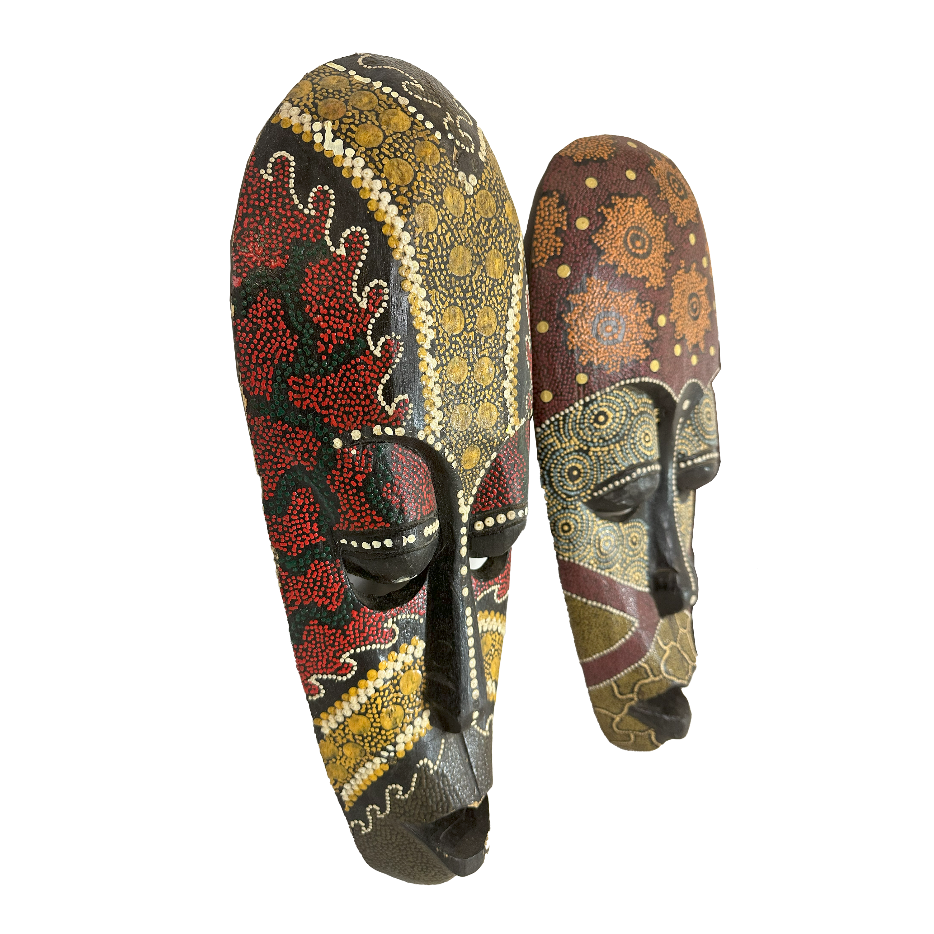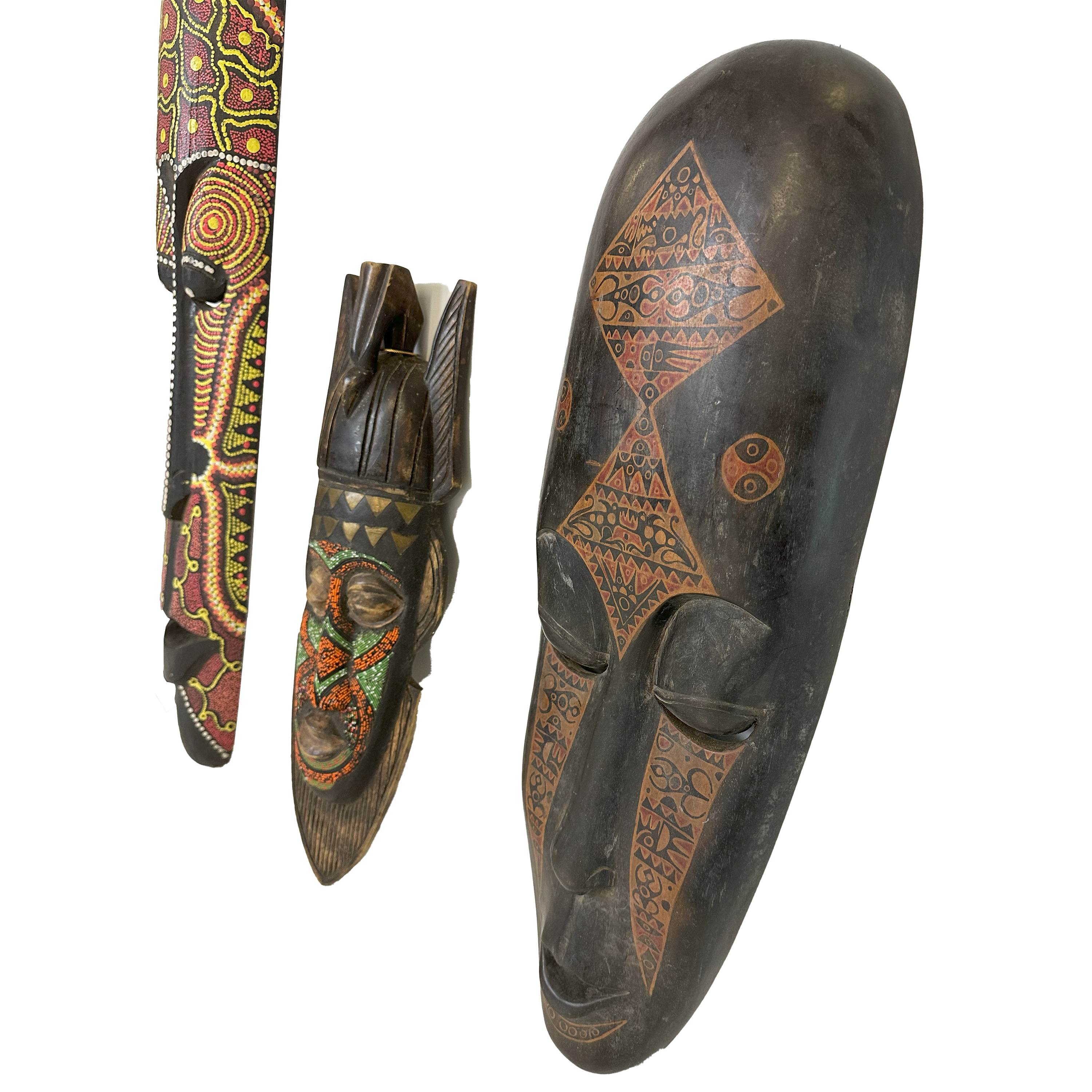 Maschere africane di diverse misure e tipologie, in legno